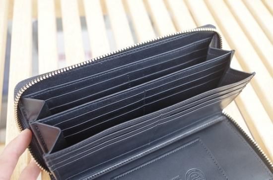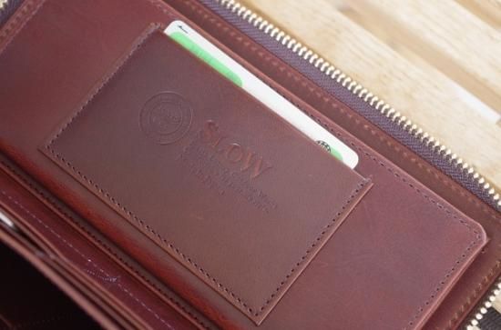 【SLOW】本体に日本で最高の技術をもつとされる栃木レザー株式会社製のフルベジタブルタンニングレザー(ヌメ革)を使用してます。 南米産のミモザの樹皮から抽出されたタンニン剤でじっくりと時間をかけてなめしあげた純正ヌメ革です。 なめし方法は匠の技術を巧みに駆使し造り上げたワイルドで完成度の高いレザーです。 使うほどに深い色合いに変化してきます。1年ほど使うだけで魅力が増してくる財布です。