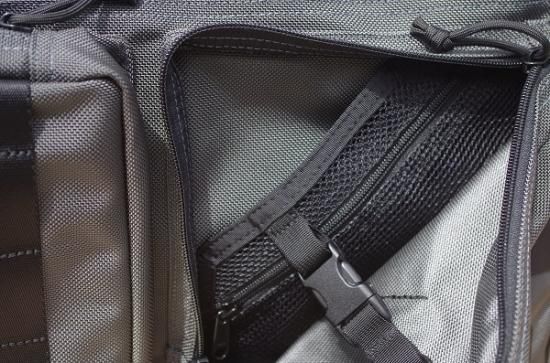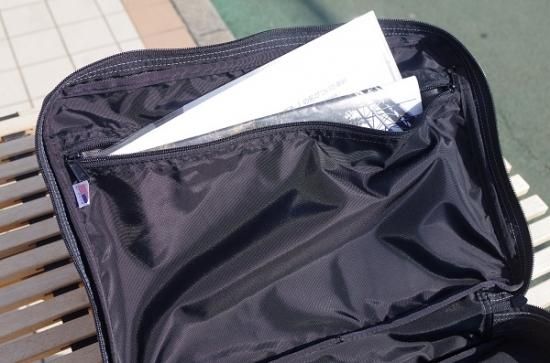 メイン収納部はビジネスシーンに最適なB4サイズに対応、開口部は180度フルオープンが可能で,大きな荷物も容易に収納が可能です。PC収納に便利なクッション材内装のインナーポケット仕様で、ポケット口を斜めにしているのでタテ型・ヨコ型どちらで持ったときもポケットの中身が出しやすい仕様に計算されています。PC収納部分は幅40cm 奥行26.5cmで,15インチ程度までのノートPCを収納できます。