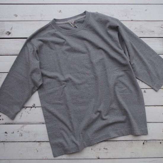 ”Re-TeeSHIRTS”Progect.と銘打たれたこの春からスタートしたプロジェクトなのです。洋服の生産時にはどうしてもクズが落ちてしまうのです。フィルメランジェの服から落ちるクズは何処よりも上質で、そのまま捨ててしまうのは本当に勿体ないのです。このプロジェクトは、そんな良質なクズと、フィルメランジェの店頭で、顧客の皆さんが着古した同ブランドの製品を回収して”綿(わた)”に戻してから、再度良質なオーガニックコットンと掛け合わせて”糸”に紡ぎ、生地として織り上げて製品化しているのです。この2022年シーズンは7分袖のTシャツをすこし緩く着てみては如何でしょうか。今までのフィルメランジェ製品では味わえない”分厚さ”も魅力の一つとなっております。