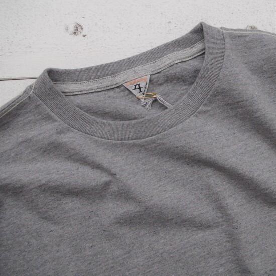 【Filmelange】フィルメランジェは2007年にスタートした日本のカットソーブランドになります。ブランド名は混色(merange)と糸を意味する(Fil)の造語から来ております。これは昔ながらのTシャツやスウェットの杢調のグレーのように美しく混ざり合った色を意味しております。『原点』、『機能美』、『簡素』と言う発想を持って衣服を着る事の意味や喜びを追求した物作りをしていて、原料の”綿花”から拘っている究極のカットソーブランドなのです。