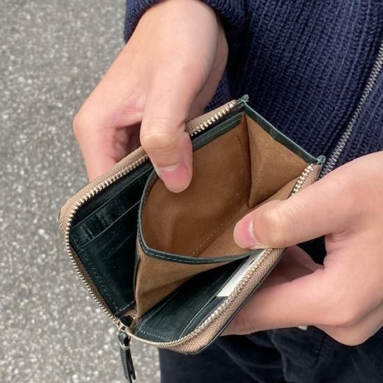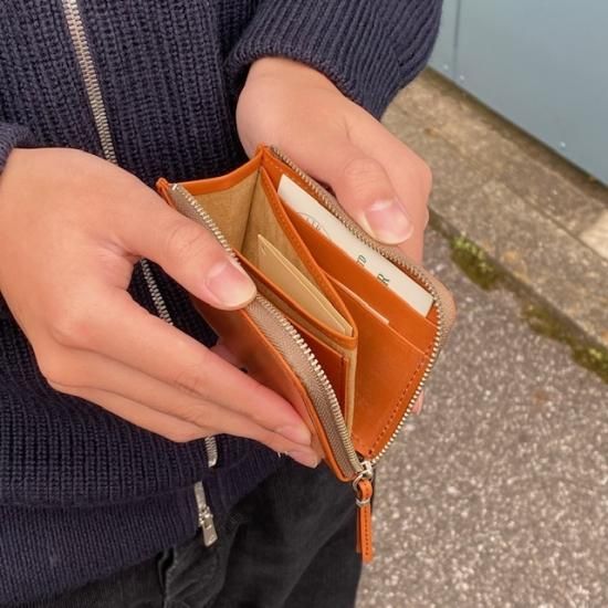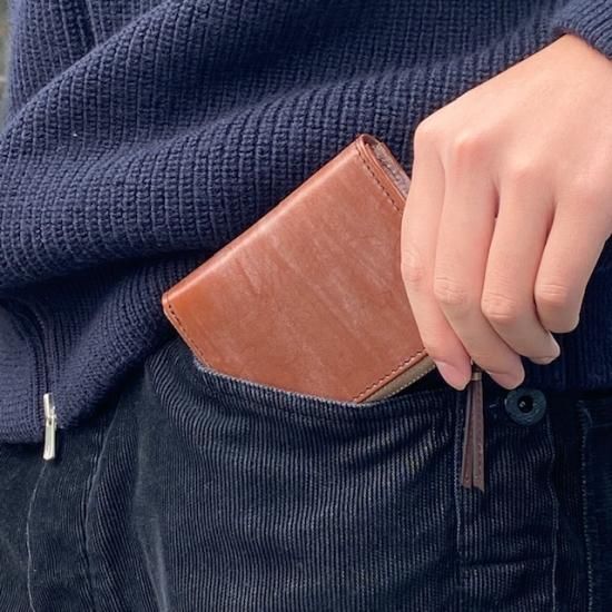 170年以上の歴史を誇るイギリスの老舗タンナー、『Thomas Ware and Sons(トーマスウェア&サンズ)社』が誇るこだわりの革でつくられた、ミニ財布。スマートなサイズ感と容量が魅力。滑らかな手触りでヴィンテージな雰囲気を漂わせた、高級感ある仕上がりがポイントです。素材には、植物性油などのワックスを塗り込むことで、強度・耐久性・撥水性を誇るブライドルレザーを使用。使い込む時間とともに革の表面から染み出したロウが取れていき、しっとりと手に馴染む柔らかな質感へと変化し、独特な表情と特有の艶をご堪能いただけます。お札を二つ折りにしてぴったり収納できるスマートなサイズ感と容量で、キャッシュレスの方も使いやすいコンパクト設計。必要最低限の現金とカードのみで、毎日軽快に持ち歩くことができます。また小銭入れはジップなしのオープンタイプで、アクションを最小限に抑え、お会計もスムーズになりとても便利です。背面には、カードポケットを装備。通勤・通学で使う交通系のICカードや駐車券、コンビニでつかう電子マネーなど、毎日頻繁に使うカード類の収納には欠かせない、機能的な設計となっています。