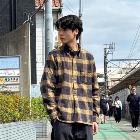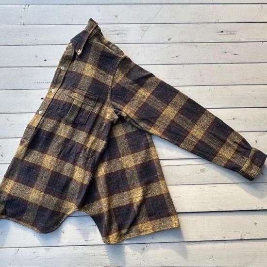 アメリカ老舗ドレスウエアブランドのビンテージ・プルオーバーB.Dシャツを基に作られたこのシャツは、細部にクラシックな魅力を感じさせる一着です。 プルオーバーならではのゆったりとしたサイズ感で、快適さと洗練られたスタイルを両立しています。 Clo-Mor Cotton Check 3色の糸から1本の糸を撚った「三つ杢」糸を使用したコットンツイードシリーズ「Clo-Mor(クロモア)」。 深みのあるメランジ感がまるでウールのような上質感を醸し出す、中肉厚素材のチェック生地です。 表面に軽く起毛加工を施し、暖かみのあるルックスと柔らかさに仕上げています。