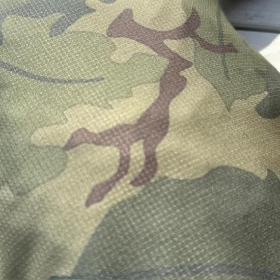 このアイテムは、BALLISTICS INDUSTRIESとのコラボレーションアイテムです。 BALLISTICSの定番アイテムをミッチェルパターンカモの薄手のリップストップで作っていただきました。 Mitchell Pattern Camouflage ・ Ester Ripstop M1956ミッチェルパターンを薄手のポリエステルリップストップにプリントした生地。 M1956ミッチェルパターンは、1950〜60年代の印象的な米軍迷彩で、緑の葉と茶色の葉のリバーシブルデザインで知られています。 1960年代のベトナム戦争でヘルメットカバーに使われたことで有名です。