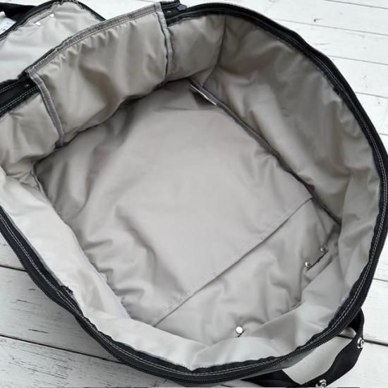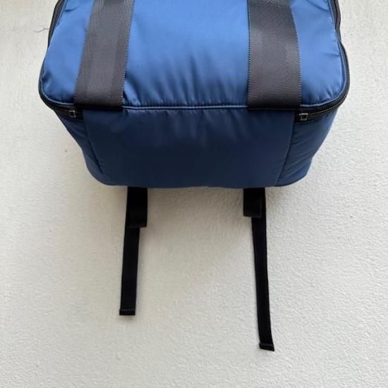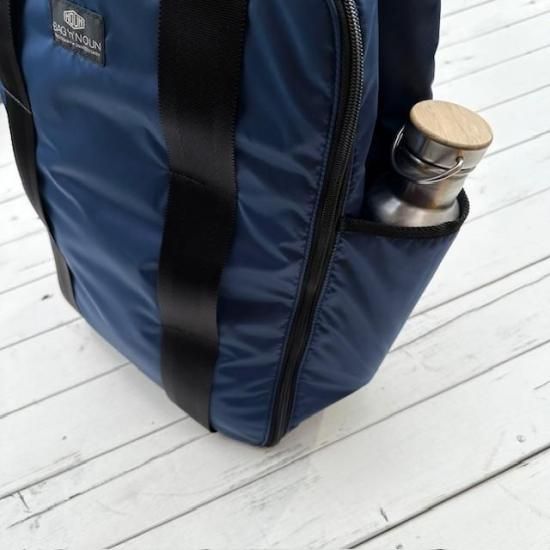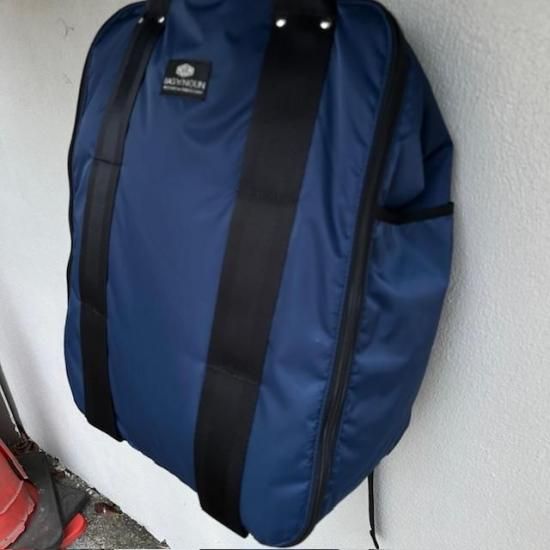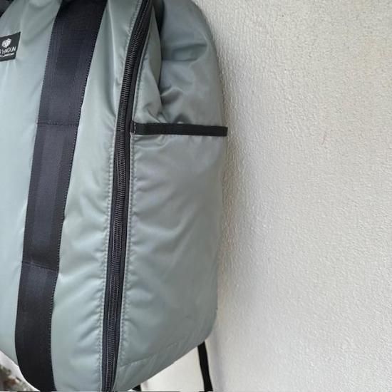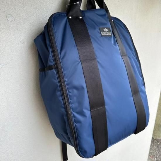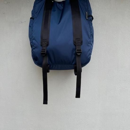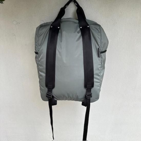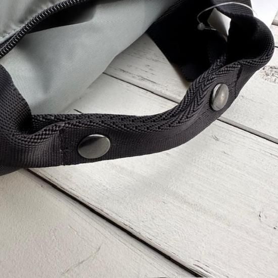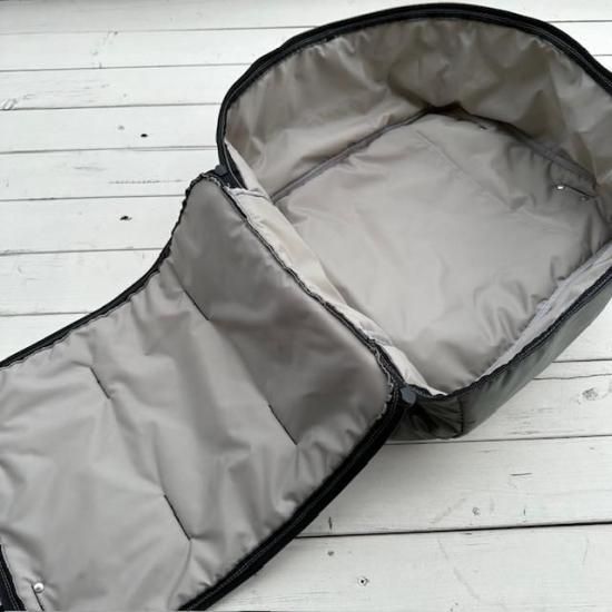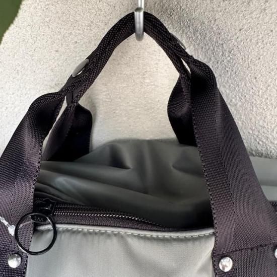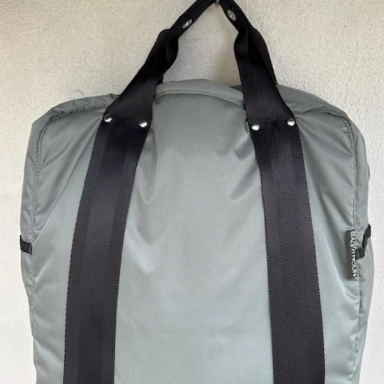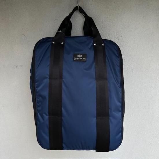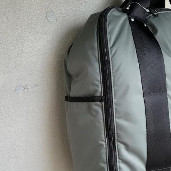 背負う、手で持つ、2通りの使い方ができるユニークなバッグ。 素材は中綿の入ったナイロンを使い、 ジッパーでスーツケースのように180度大きく開けることができます。 アナログ感のある使い心地が楽しめるカジュアルなアイテムです。