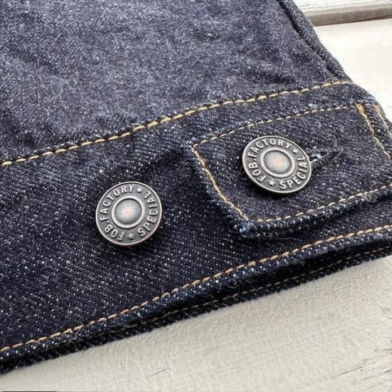 使用した生地は、スーピマコットン 100%の原綿で製作した、F.O.BFACTORY オリジナルの14.75oz のセルビッチデニム。