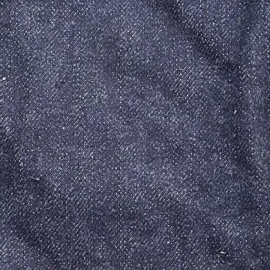 濃色のインディゴブルーで高密度に織られ、耐久性もありつつ、高級な原綿を使用している為しなやかさも兼ね備えている。