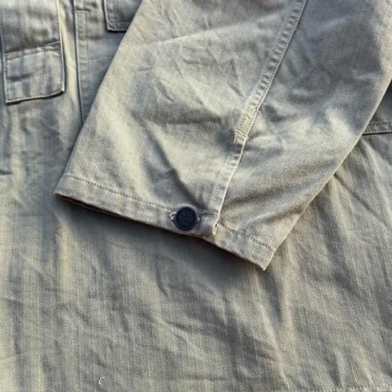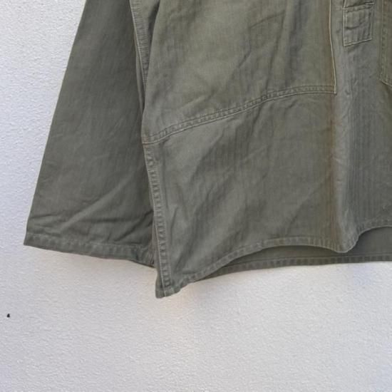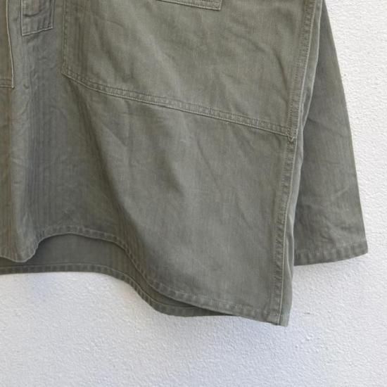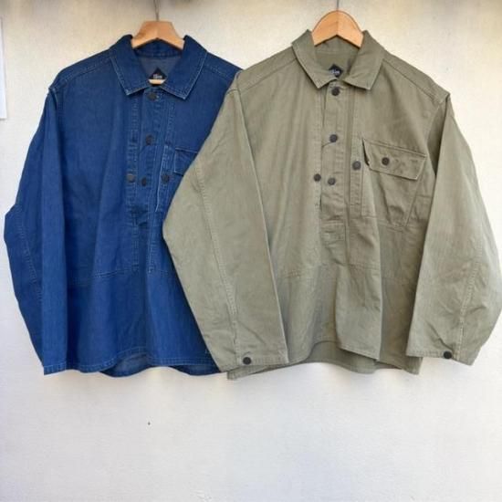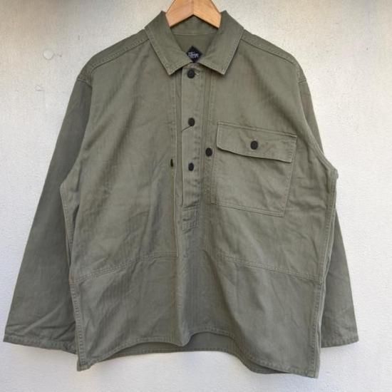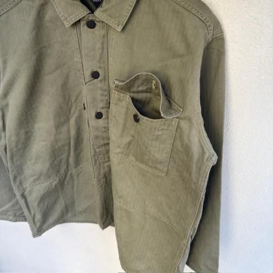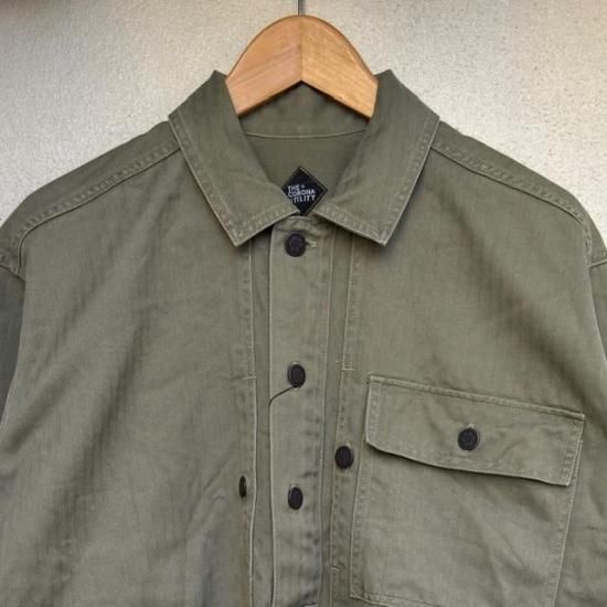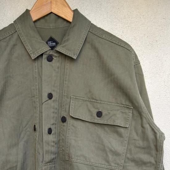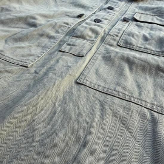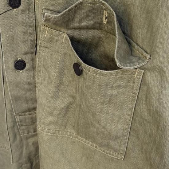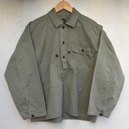 このジャケットは、US ARMYとMARINEのワークジャケットを融合させたプルオーバーミリタリージャケットです。直線的でザックリとしたプルオーバージャケットのボディには、身頃いっぱいのポケットが特徴となっています。クラシックな雰囲気を持つこのアイテムは、アウターとしてもインナーとしても幅広く活用できるシャツ&ジャケットとしてデザインされています。 Military SZ H.B.T 1940年代のUSMC (US MARINE CORPS)のユーティリティユニフォームで使用されていたヘリンボーンツイルをレプリカした生地。 SZ織 (SZ weaving)が特徴の耐久性のあるワークウエア用テキスタイルです。 SZ織とは、異なる撚り方向の糸を組み合わせることで耐久性が上がり、ねじれやシワになりにくい生地になります。