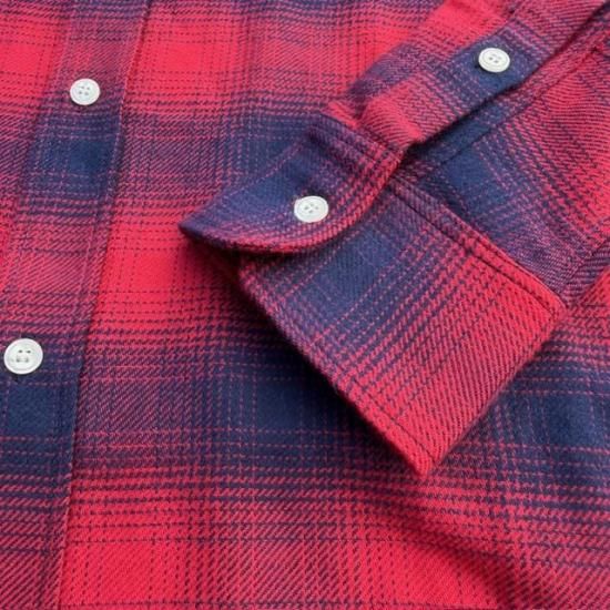 コンション・キネの2025年新作シャツになります。レギュラーカラーのシャツですが、ワークシャツのような仕様に上品なワイドな襟の組み合わせが新鮮に感じるのでは。これらは、フランス国内のドレス縫製をこなす工場で仕立てられている、が理由となり、ここでしか味わえない大人好みのシャツな味付けとなっております。フランス製で¥18,000というプライスも秀逸ですね。生地は、上品な面持ちの”オンブレチェック”のネル生地がチョイスされております。打ち込み本数が多く、しっかりとした生地感と微起毛がまた上品な味付けとなっております。こちらも生地大国フランス国内で調達されているのです。