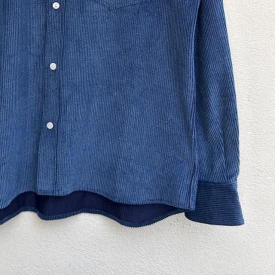 コンション・キネの2025年新作シャツになります。レギュラーカラーのシャツですが、ワークシャツのような仕様に上品なワイドな襟の組み合わせが新鮮に感じるのでは。これらは、フランス国内のドレス縫製をこなす工場で仕立てられている、が理由となり、ここでしか味わえない大人好みのシャツな味付けとなっております。フランス製で¥18,000というプライスも秀逸ですね。生地は、艶感が美しいコーデュロイとなっております。カジュアルな生地ですが、品のあるインディゴブルーも相まって中々見掛けない味付けとなっているのです。こちらも生地大国フランス国内で調達されているのです。