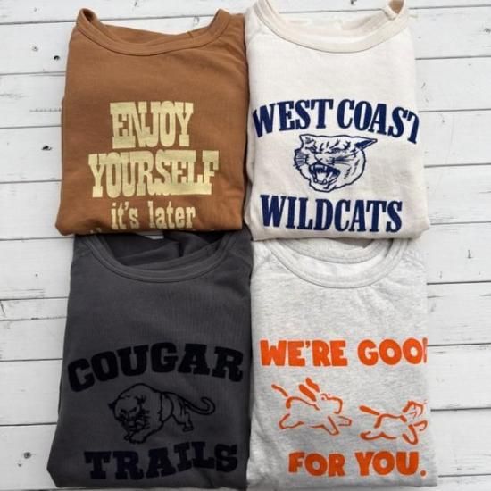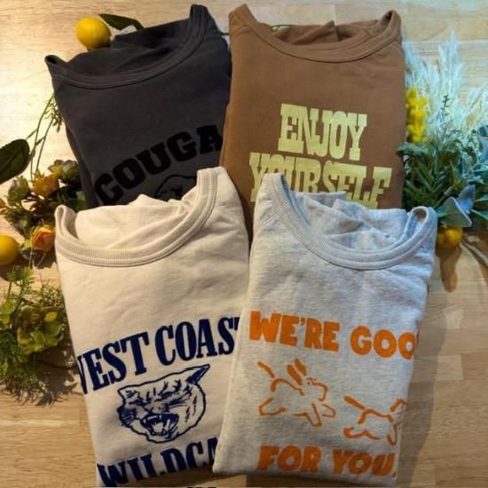 MIXTAならではの雰囲気のあるプリントスウェットになります。雰囲気のあるボディはまるでビンテージのスウェットそのものですね。でも古着ではありませんのでシルエットも整っていると思います。拘りのプリントもひび割れプリントやフロッキーなどバリエーションも豊富なのです。