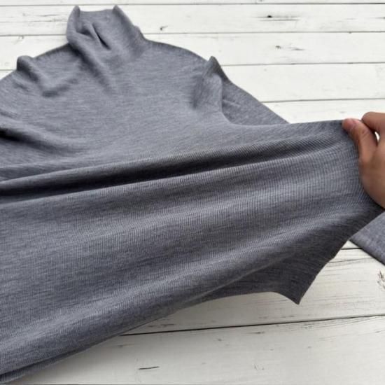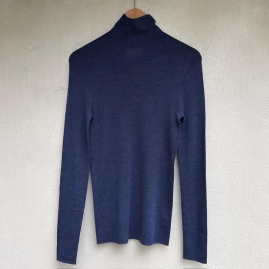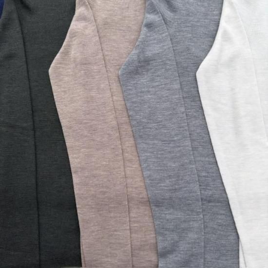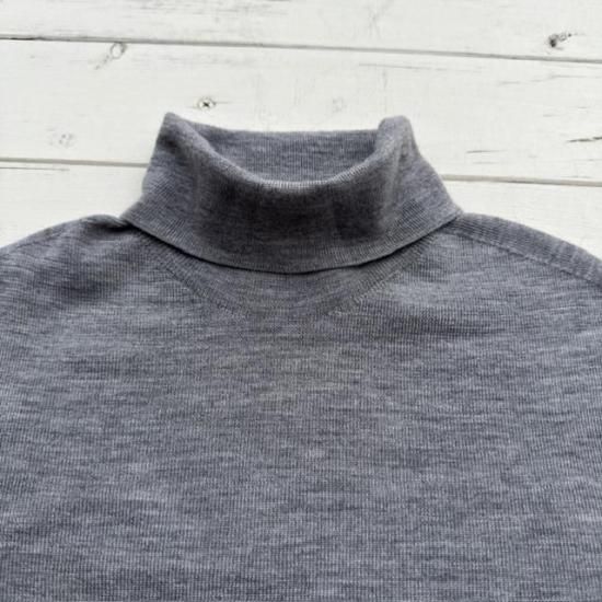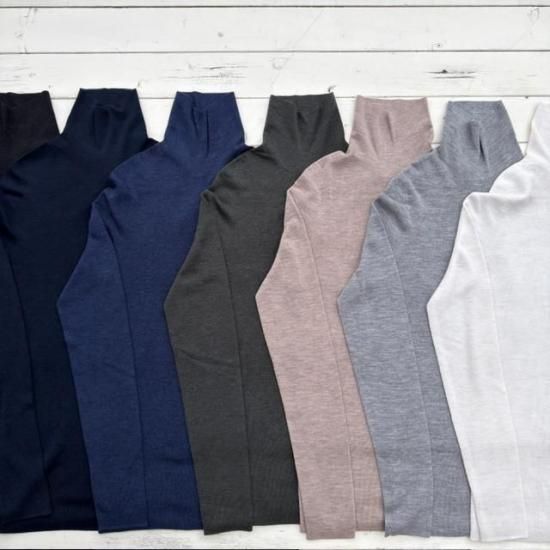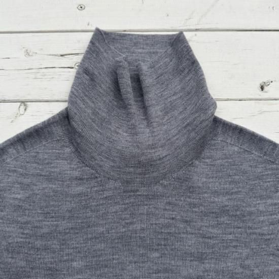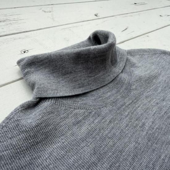 高級なメリノウールを使って編み立てられたタートルネックニットとなります。この2025年シーズンはメランジ糸を使っているので、カラー毎の絶妙な霜降り感を味わってください。細かいリブ編みは、メリノウールと共に豊かな伸縮性をもたらしてくれ、それはそのまま極上の着心地へと繋がります。そんな編み機は勿論”ホールガーメント機”となり、18Lというかなり細い編み地を編み立てられる機械を使用しております。インナー寄りなタートルネックですが、そのまま1枚着で活動しても問題の無い上品さを持ち合わせます。ジャケットのインナー使いだけではなく、あらゆるアウターやシャツのインナーとして使っていただけると思います。