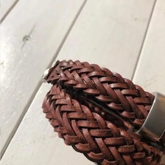 カジュアルからドレスまで合わせやすいレザーメッシュベルト。シンプルなデザインだからこそ美しく編み込まれたメッシュがスタイリングに存在感を発揮してくれます。職人の手作業によって編み上げられ、目が詰まっているため、伸びも少なく耐久性も優れています。サイズ調整が簡単で、使い勝手がいいところもポイントです。