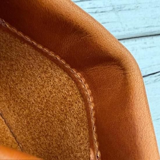 HERBIE(ハービー)レザー: 1911年創業の歴史あるタンナー、山陽社製のフルベジタブルタンニンレザーです。同社は日露戦争後に、軍需向けの革靴やベルト等を生産していた、品質にはお墨付きのタンナーです。北米産のミモザから抽出されたタンニンを使い、じっくりと時間をかけてピット層にて鞣されたレザーで、ハリがあり軽量ながら耐久性を兼ね備えています。仕上げには蝋引きも施しており、マットでムラのある表情が自然な無骨さを出しています。使い続けるうちに艶が出てきて顕著な経年変化が味わえます。