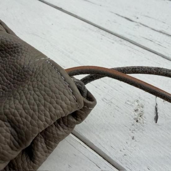 国内の老舗タンナーより1枚1枚丁寧に仕上げた本体のレザーは、地下100メートルからくみ上げた水を鞣しの工程に使用している為、品質を安定させ、きめが細やかで独特な風合いをご堪能頂けます。更に仕上げ工程に24時間ドラムでから打ちする事で、もっちりと滑らかな風合いに仕上げました。