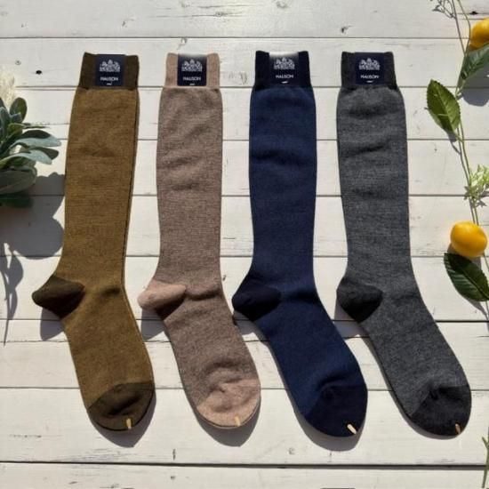 冬に欠かせない、中厚タイプのウール混ロングホーズ。