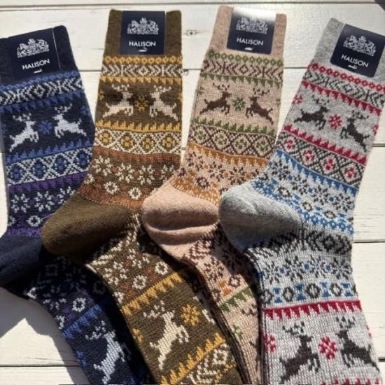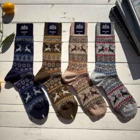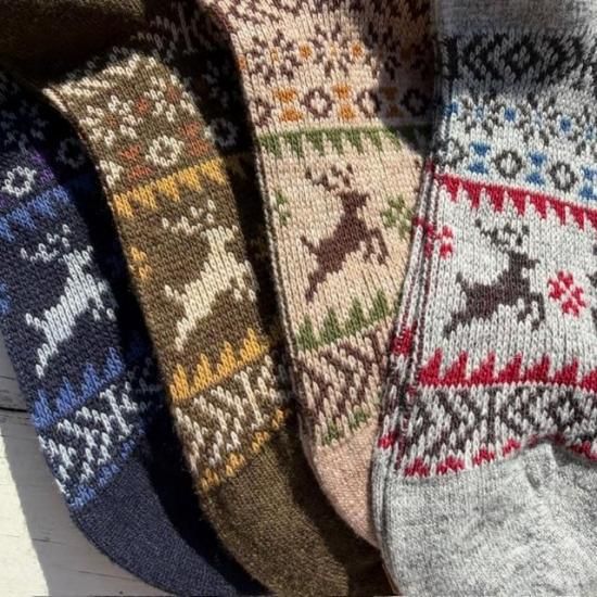 冬の定番として欠かせないトナカイ柄ソックス。