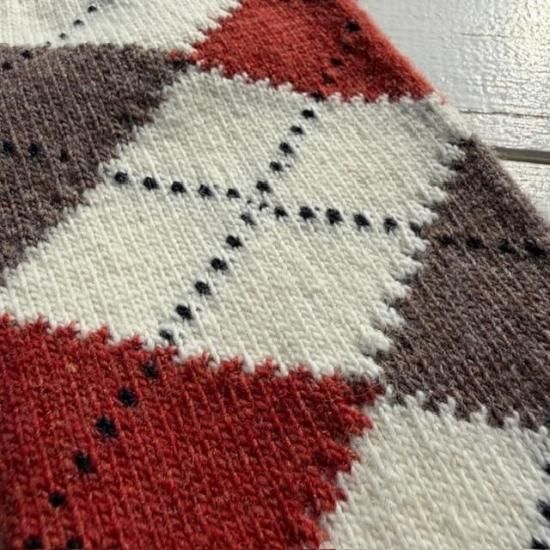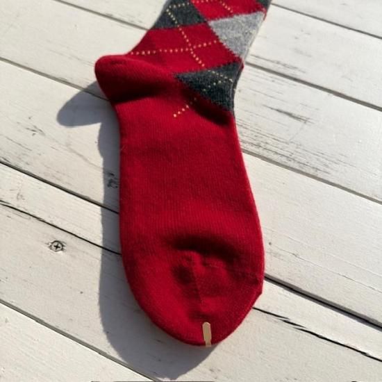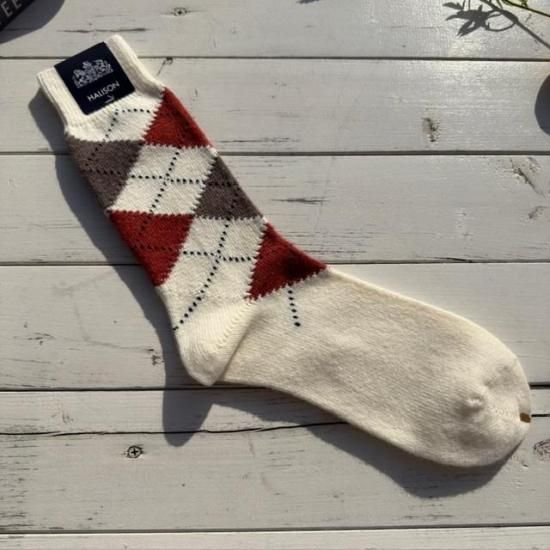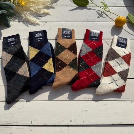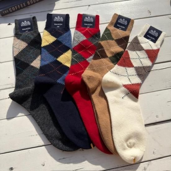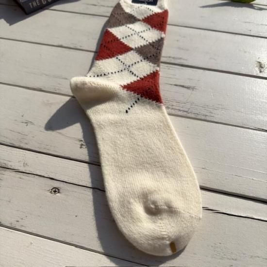 冬のトラッドスタイルに欠かせない、ラムウールを使用したアーガイルソックス。