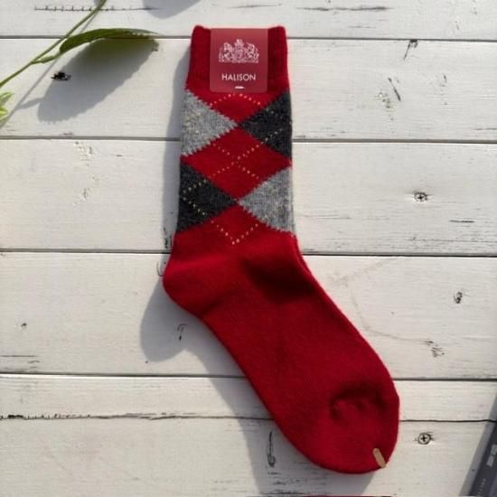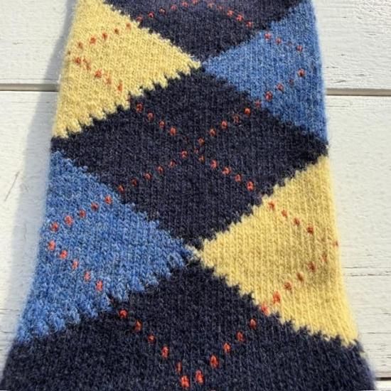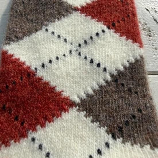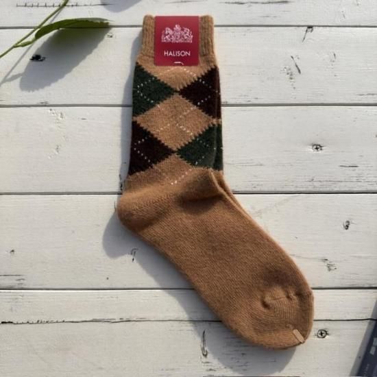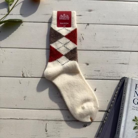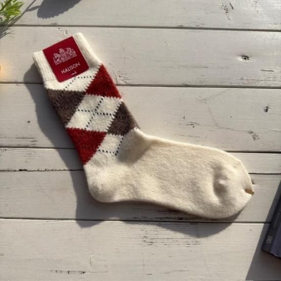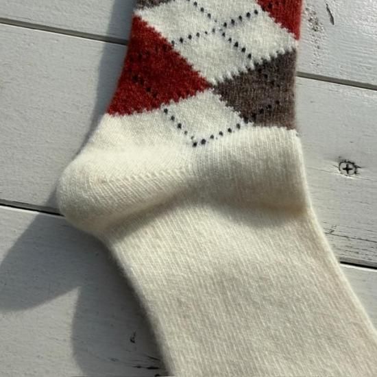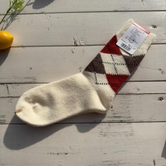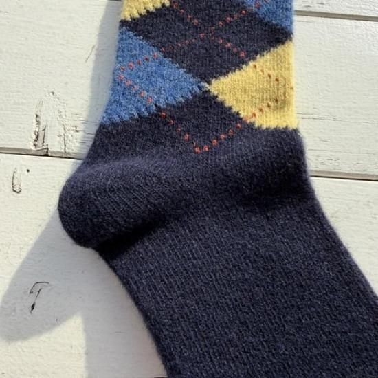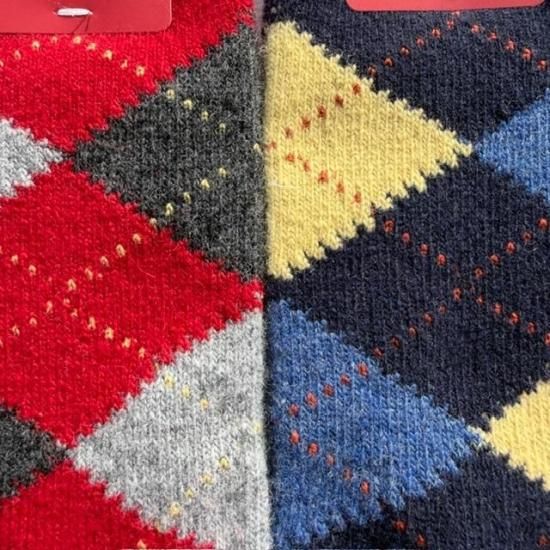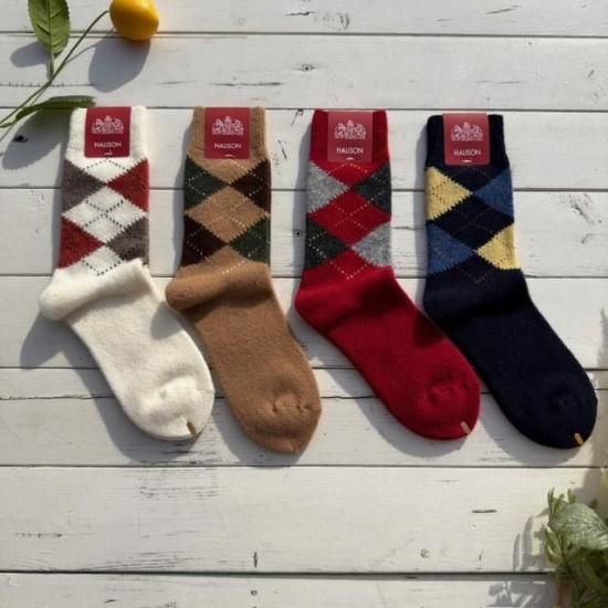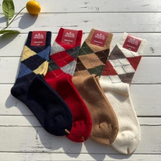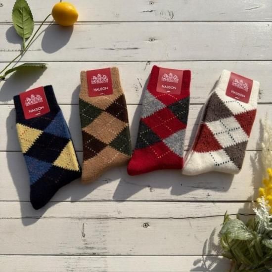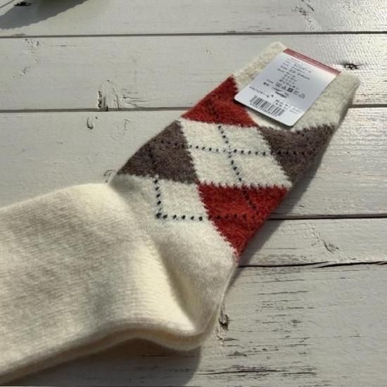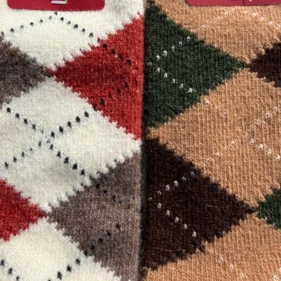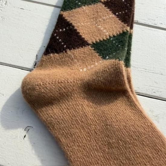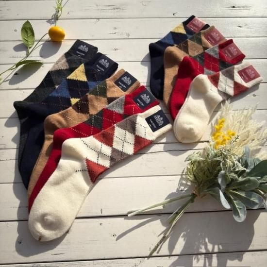 冬のトラッドスタイルに欠かせない、ラムウールを使用したアーガイルソックス。