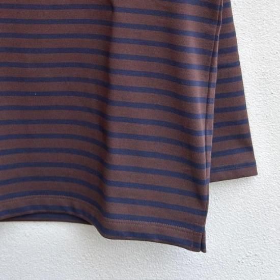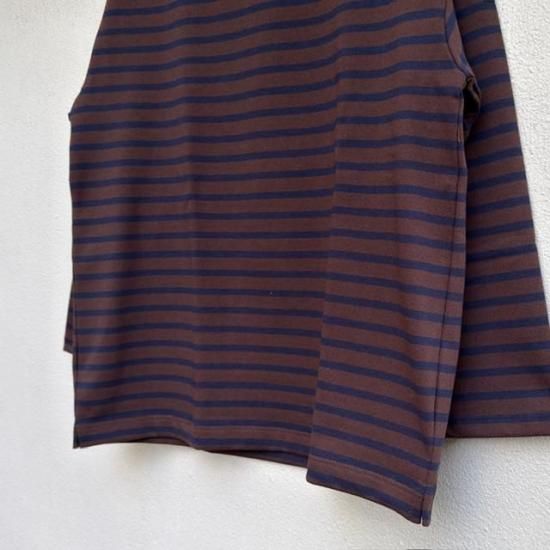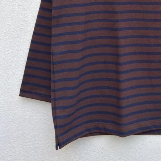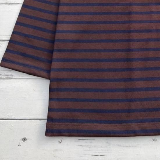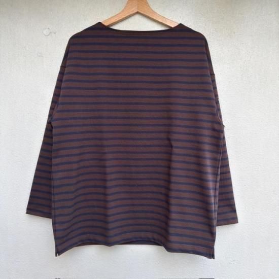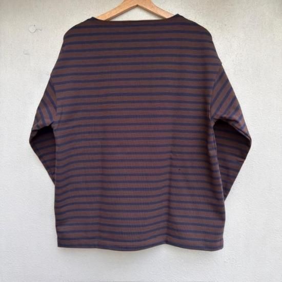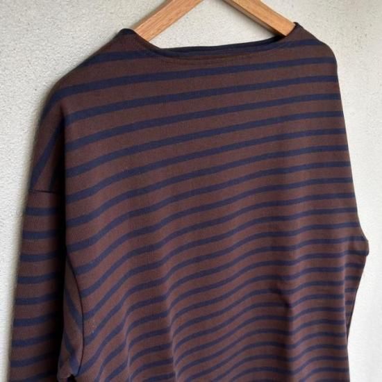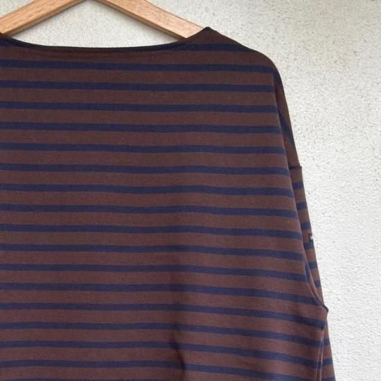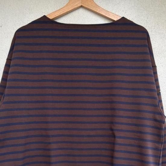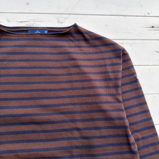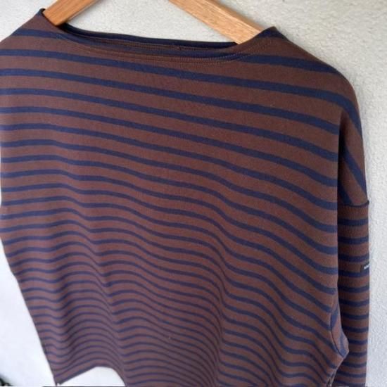 定番のOUESSANT(ウエッソン/ウェッソン)をベースとし、身幅と袖幅にゆとりを持たせた着心地のよいデザイン。 リラックス感があり年齢や体型を問わずに楽しみやすい一着。ネックはボートネックデザインで、左肩にはブランドタグが付いています。