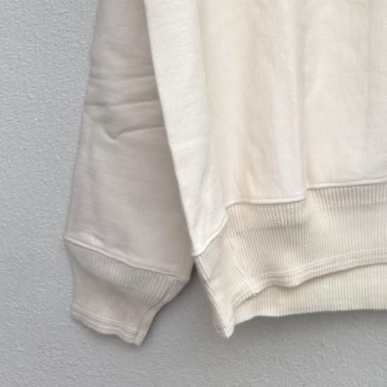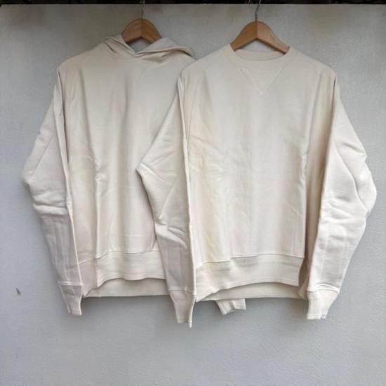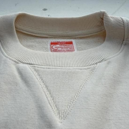 GOTS認証のオーガニックコットンを100%使用したフレンチテリー素材のスウェット。1948年製の希少な編み機でゆっくり編まれ、柔らかく奥行きのある質感が特徴です。フリーダムスリーブやVガゼット、2段リブなど細部まで丁寧に仕立てられ、ヴィンテージらしい存在感を放ちます。フランス生産ならではの品の良さも魅力で、長く愛用できる一着です。価格面でも優れたバランスの逸品。
