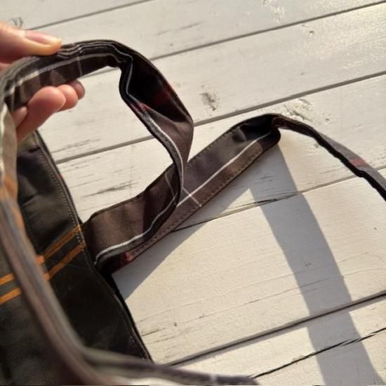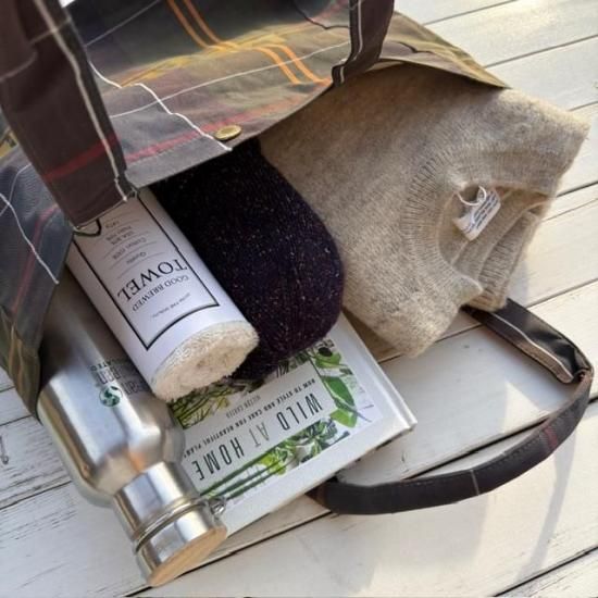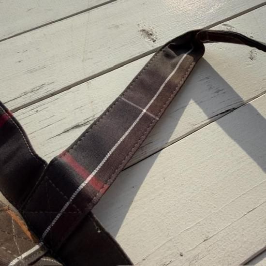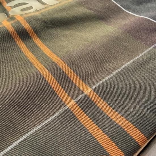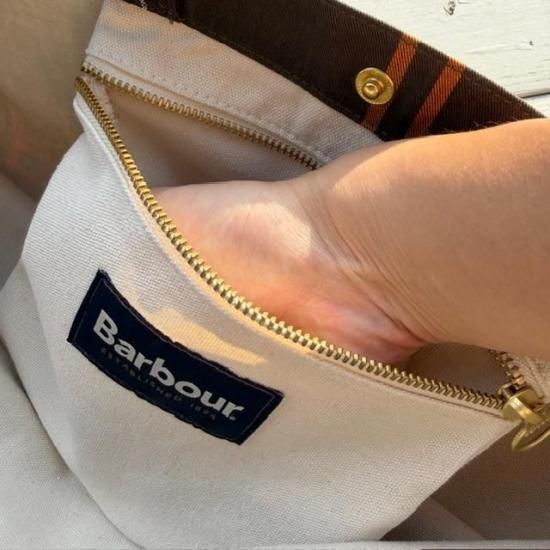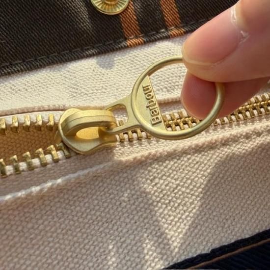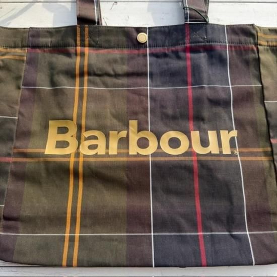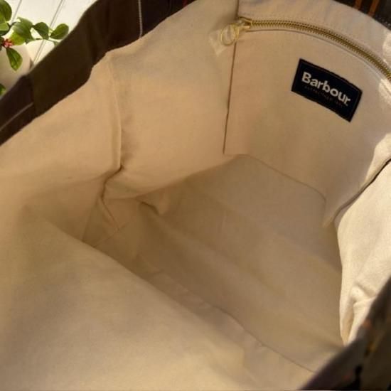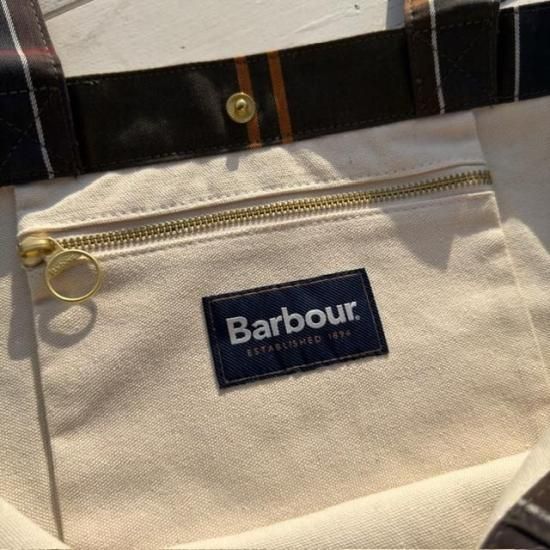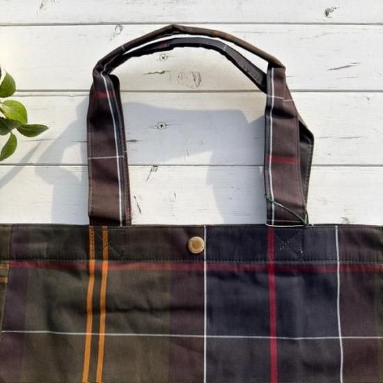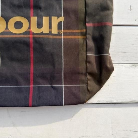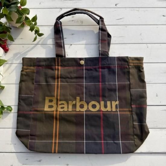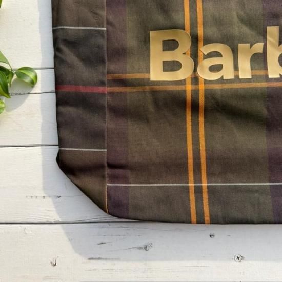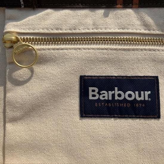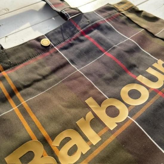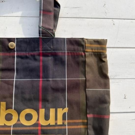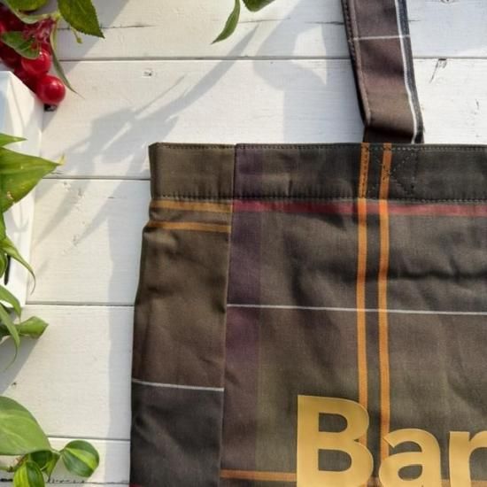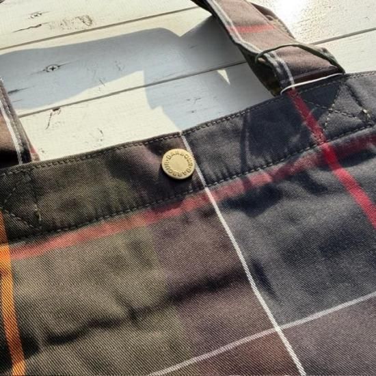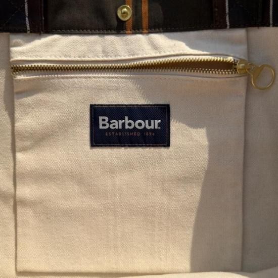 Barbourらしさを象徴するクラシックなタータンチェック柄を全体にあしらったトートバッグ。