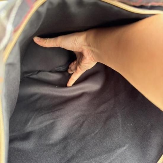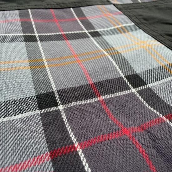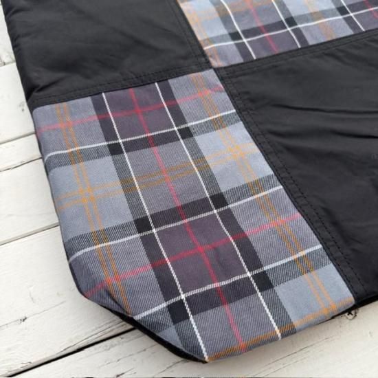アイコニックなタータンチェックがパッチワークで施されたデザインが特徴的です。
