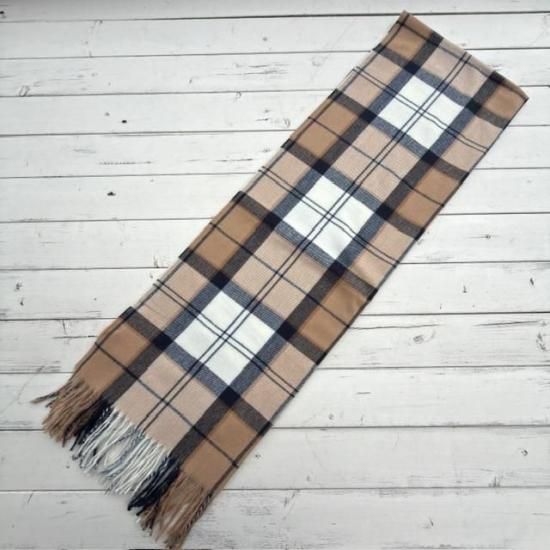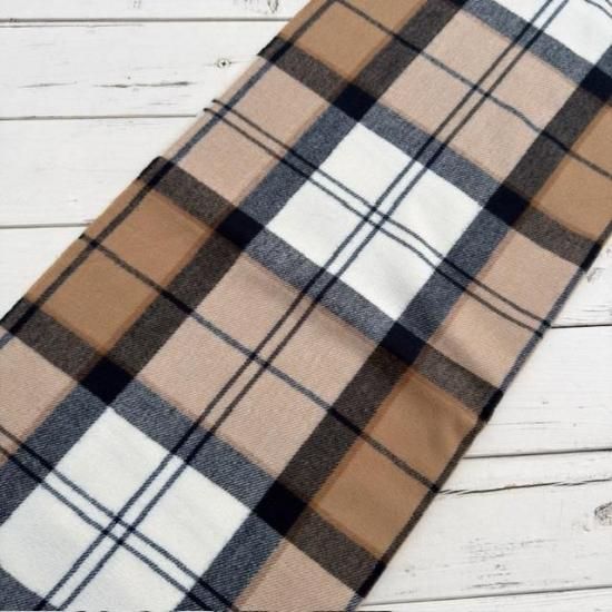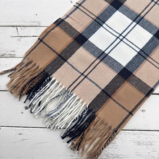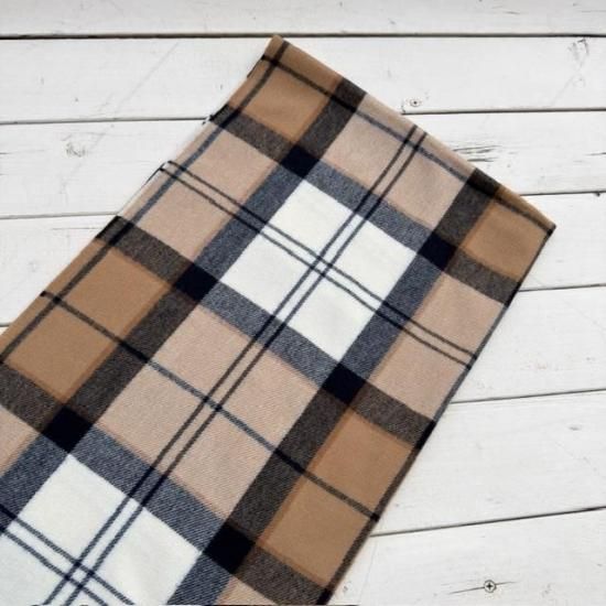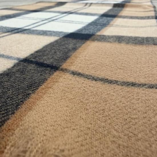 柔らかな糸で織り上げられた心地よい肌触りと、クラシックなタータン柄が魅力です。