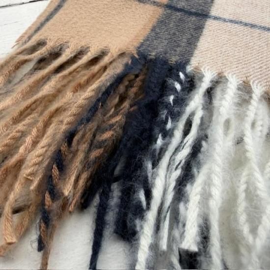 寒い日にさっと羽織れる大判サイズのマフラー。